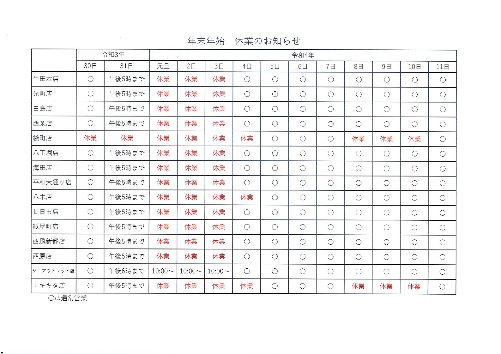 ●営業時間は袋町店を除く、HPへ記載の通常通り